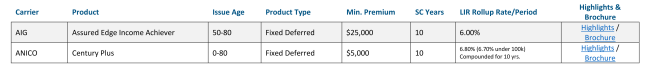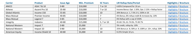 ***Contact Premier to discuss MYGA availability to age 100 & FIA availability to age 93 (mature Date of 115) ***