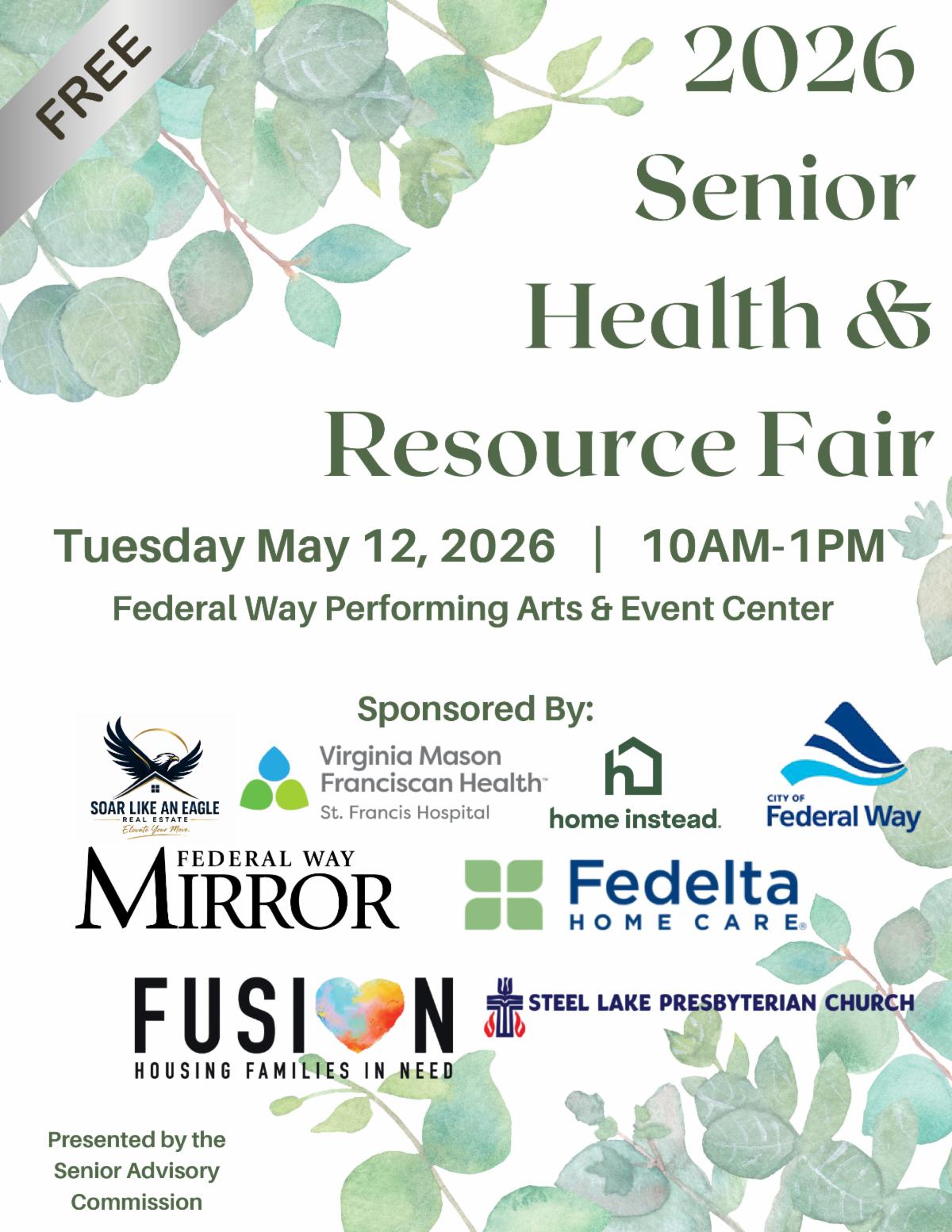 The Senior Advisory Commission proudly invites you to join them at the 4th Annual Senior Health & Resource Fair at the Performing Arts & Event Center on Tuesday, May 12, from 10 a.m. to 1 p.m.