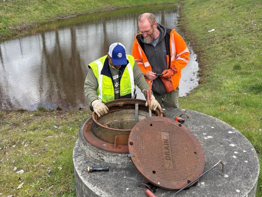 We caught up with Ernie and Miguel (SWM Maintenance Crew members) who were inspecting the mechanisms to ensure that pond drainage was functioning properly during the recent heavy rainfall. Thank you Ernie and Miguel for your expertise and work in keeping our stormwater systems working!