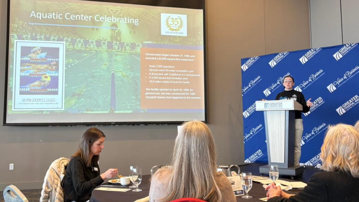 Mayor Jim Ferrell and members of the City Council attended last week's Greater Federal Way Chamber of Commerce luncheon, which featured a keynote from Meagan Viken. Viken manages the King County Aquatic Center, where she focuses on both high-level competition and community access.