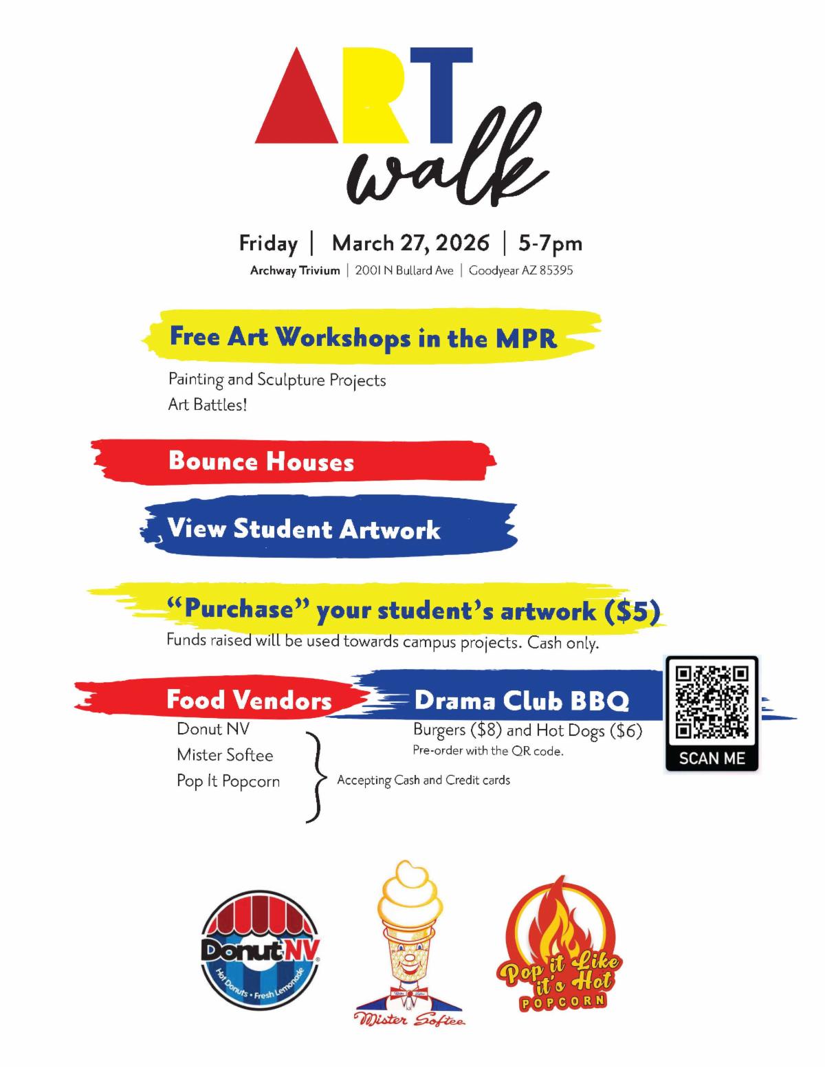 Food Trucks (Card or Cash at event) Vendors include DonutNV (donuts & lemonade), Mister Softee and Pop it like it's Hot Popcorn