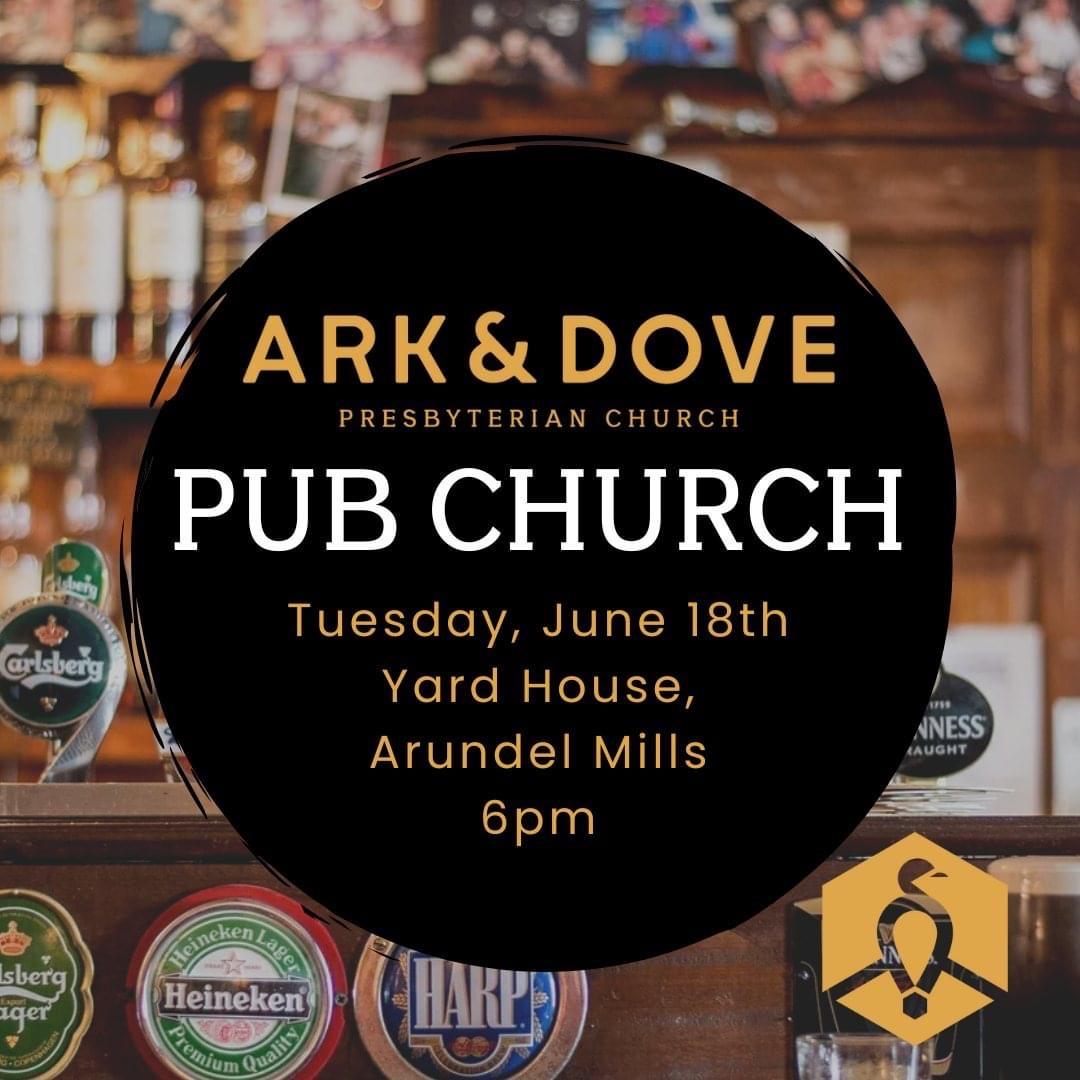 Pub Church is about gathering people together to learn from one another. Our conversations will be informal, non-judgmental, inclusive, theological, and lively. During some gatherings we’ll pursue truth, during others we’ll sit as non-anxiously as possible with doubt, and every time, we’ll be the church where all are called and where all are welcome. Our first gathering will be on Tuesday, June 18th at Yard House in Arundel Mills at 6pm. Please RSVP to Pastor Jenn by text or email jenn.mccullough@arkanddove.org so we have an estimated headcount.