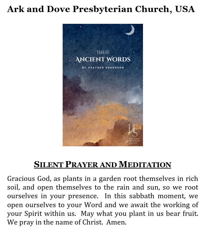 Thank you to our Children's Choir and our youth who led worship last week. They really did a terrific job. The music was especially great. I would say the congregation was really into it. And thank you to Rae'tta Bond our Director of Music for Children and Youth, we are grateful for her ministry at Ark and Dove.
