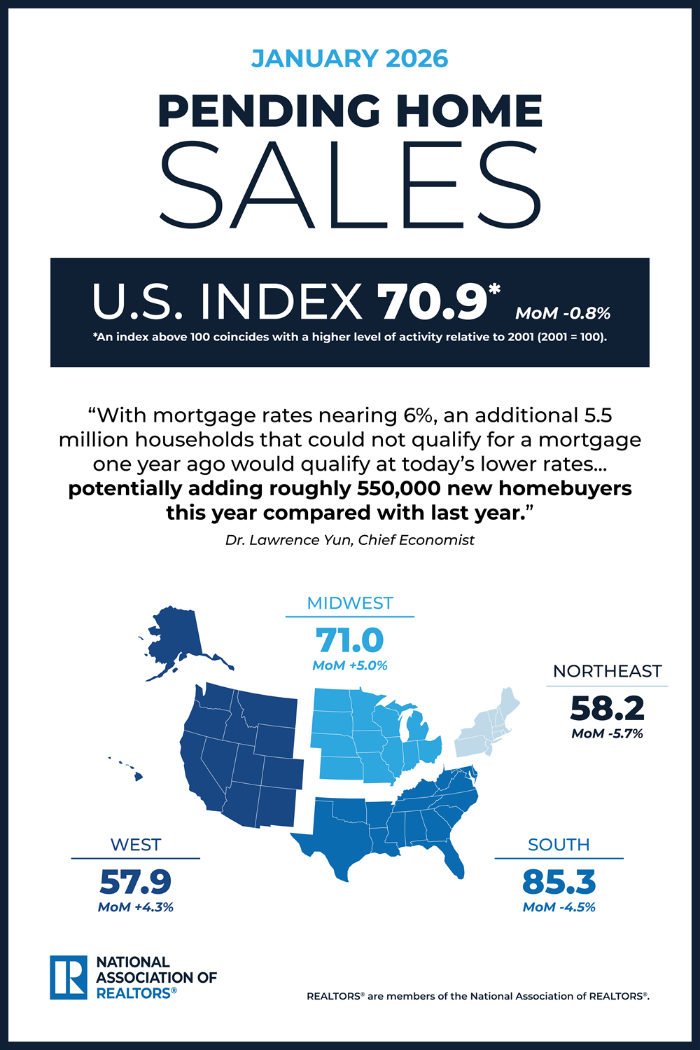 - Pending Sales - decreased -0.8% month-over-month [while in the regional South they decreased -4.5%]