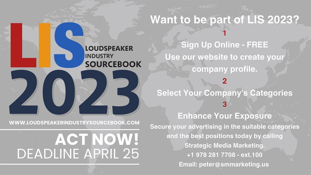 The Loudspeaker Industry Sourcebook (LIS) - www.loudspeakerindustrysourcebook.com - is a fundamental resource for the industry and - as it happens every year - our team is already busy working on the listing updates (time to update your entries will end soon) and getting some of the unique content for this annual publication.