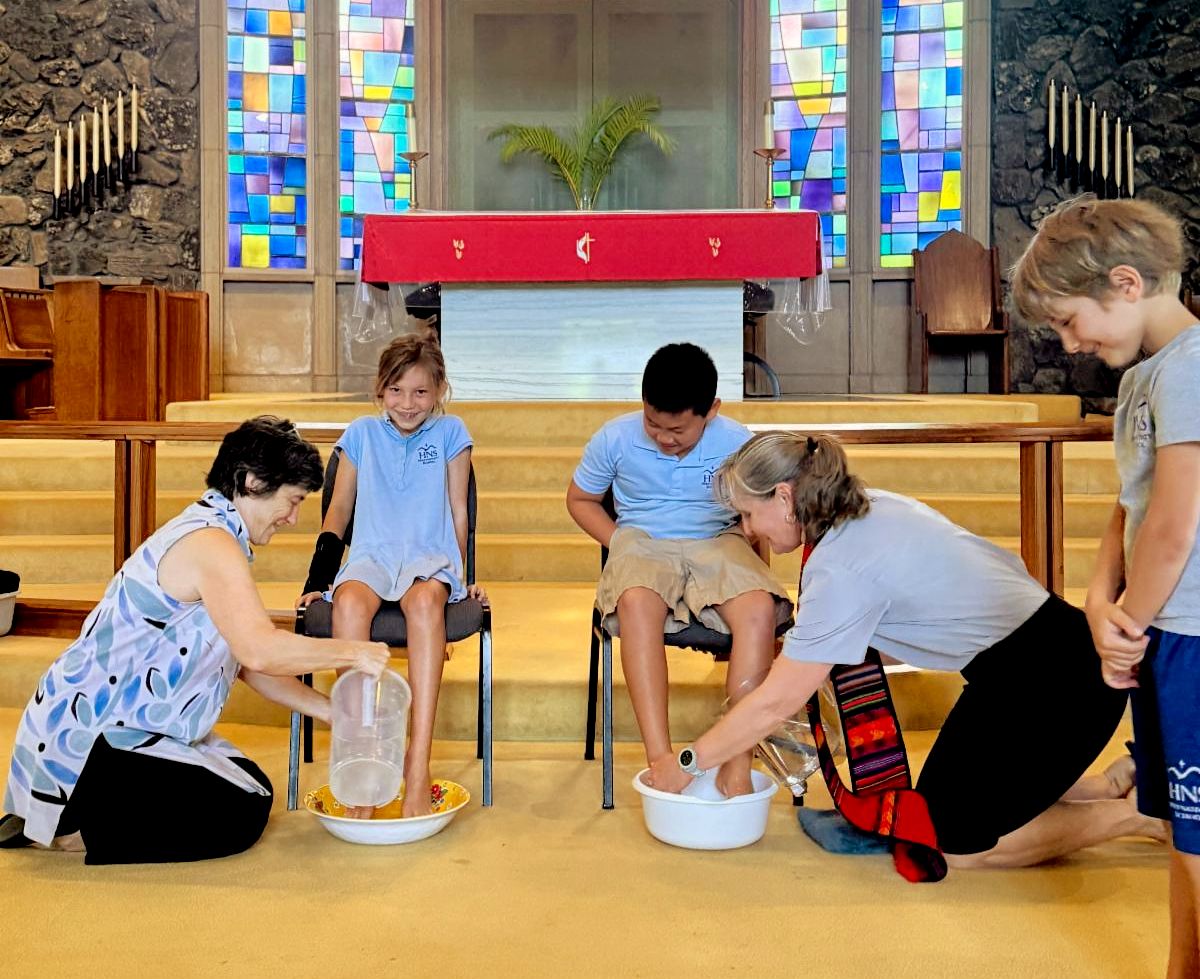 At morning chapel services, Rev. Jenn shared the story of Jesus' washing his disciples' feet.