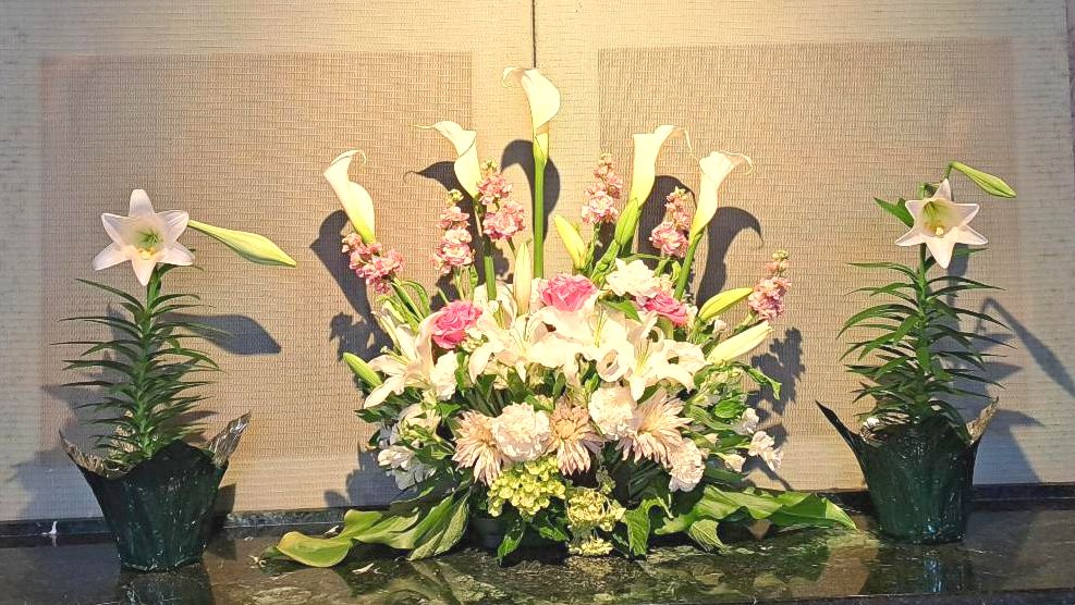 Every year for many years, we have been graced by the appearance of the flowered Easter Cross, quietly decorated a day ahead by a small and dedicated group