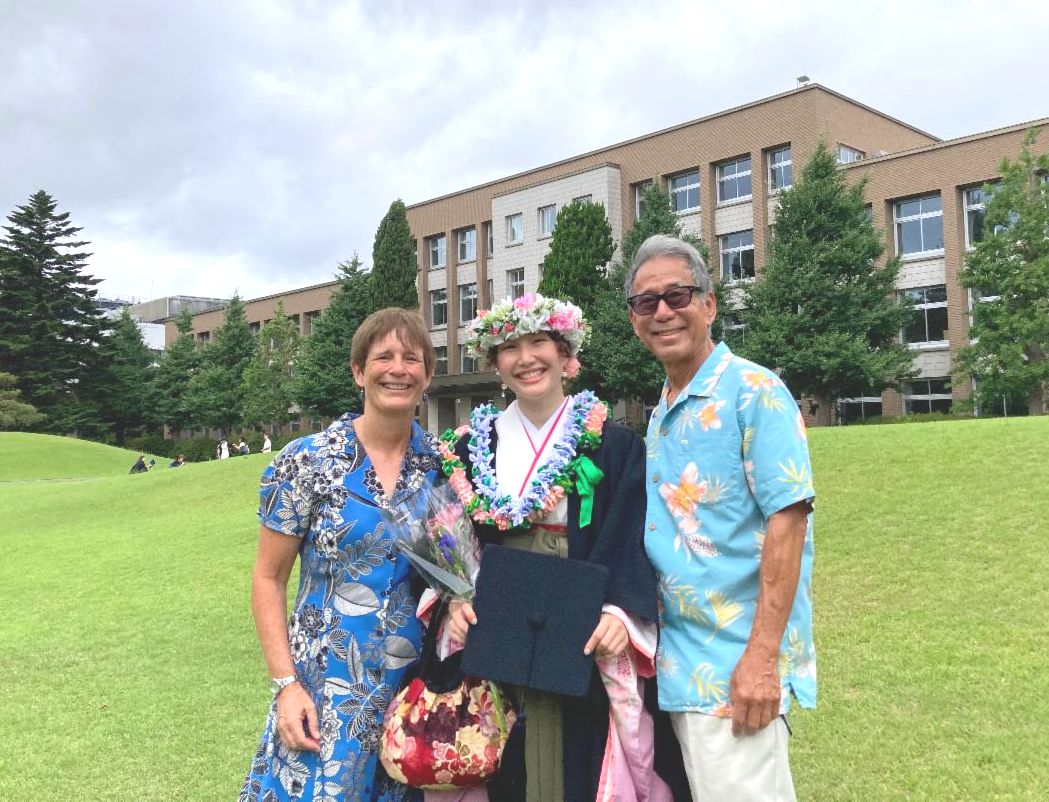 She majored in International Relations. Julia has been home in Honolulu for a few week, but returns soon to her university in Tokyo to continue her education in a master's degree program.