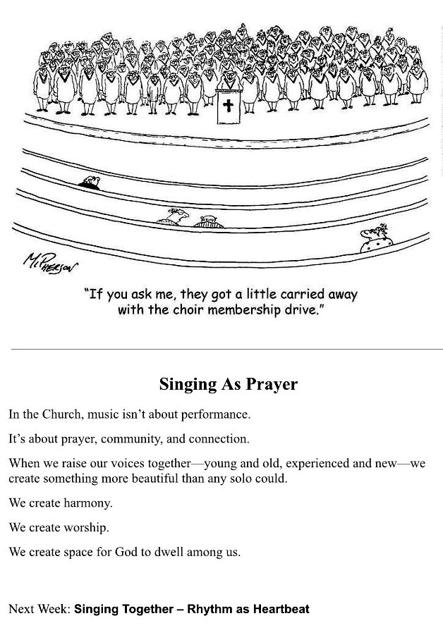 Who: For anyone who feels called to sing, regardless of musical experience. Whether you’re completely new to music or returning after many years, this class is for you!