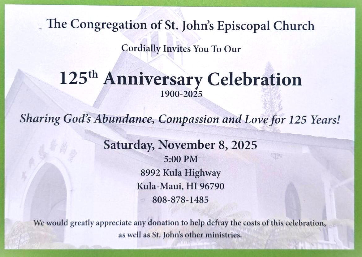 Invitation to to St. John's Anniversary, in Kula, Maui