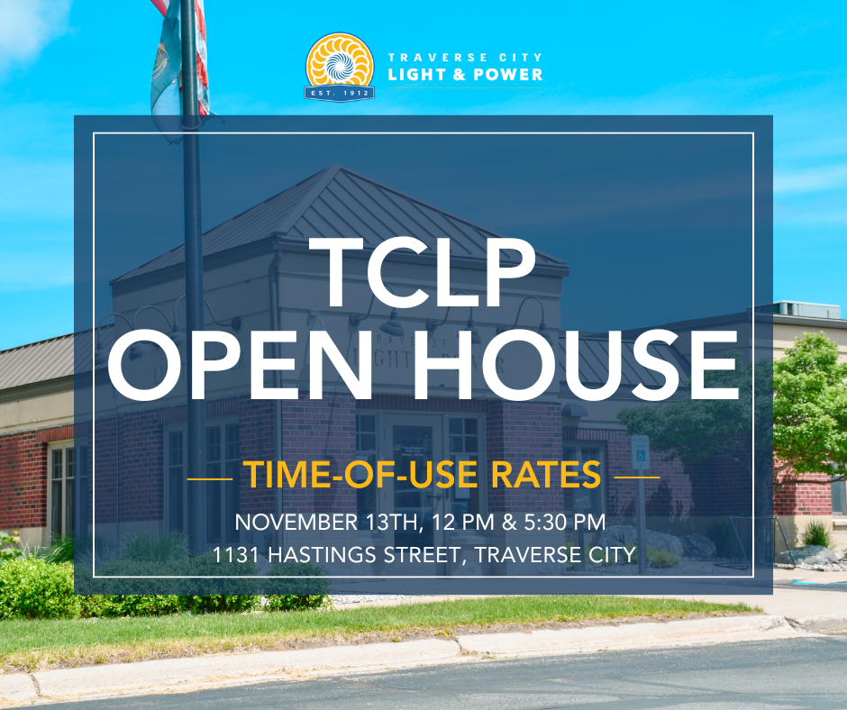 Taking effect in December 2025, Traverse City Light & Power (TCLP) will be moving to time-of-use rates. These rates are billed on an on-peak and off-peak cycle during the week. Weekends and holidays are off-peak.