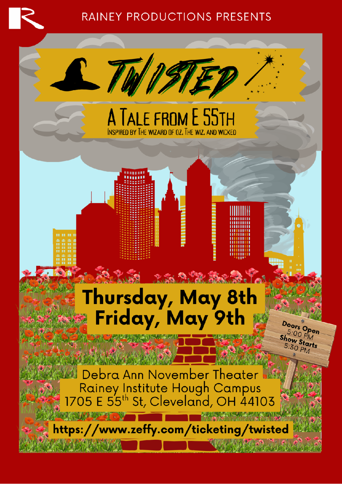 Rainey Institute proudly presents TWISTED: A Tale From East 55th, a bold and magical re-imagining of The Wizard of Oz, The Wiz, and Wicked — with a Cleveland twist you won’t want to miss!