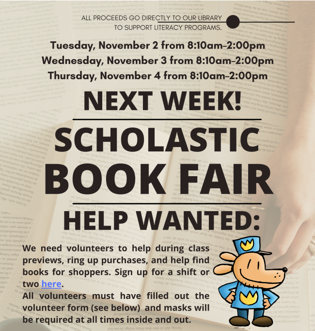 - 11/2-11/4 - Scholastic Book Fair, 8:10am-2pm*