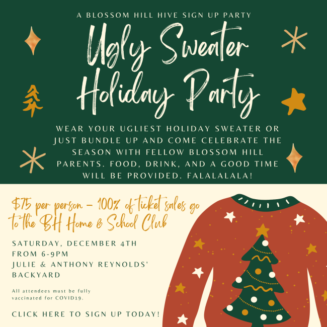*The Beehive newsletter is approved by Principal Lisa Reynolds and the H&SC Board and is written exclusively to provide the Blossom Hill community with pertinent, weekly school information. Articles, information, calendars, etc. may not be duplicated or re-printed in any manner without the permission of the Home & School Club or the Blossom Hill school administration.