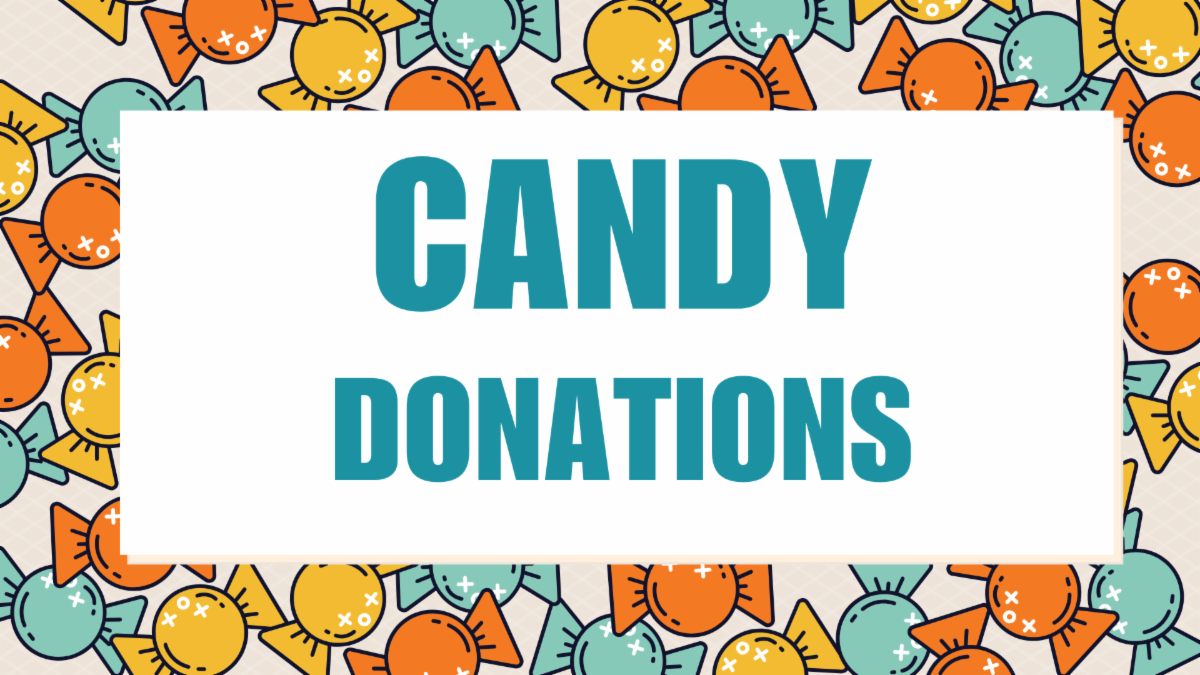 Boxes will be in the Gathering Hall, Cammack Lobby, and Vestibule for Candy Donations.