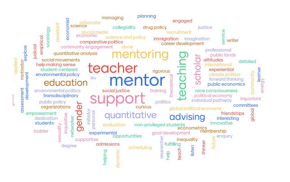 But how about in our own words? The heart of SPP is seen clearly in this word cloud where our faculty describe their work. We clearly prize our roles as mentors and teachers, and our diverse substantive interests highlight the breadth of our work. Interested in learning more? Drop Director Bolzendahl a note at spp-director@oregonstate.edu!