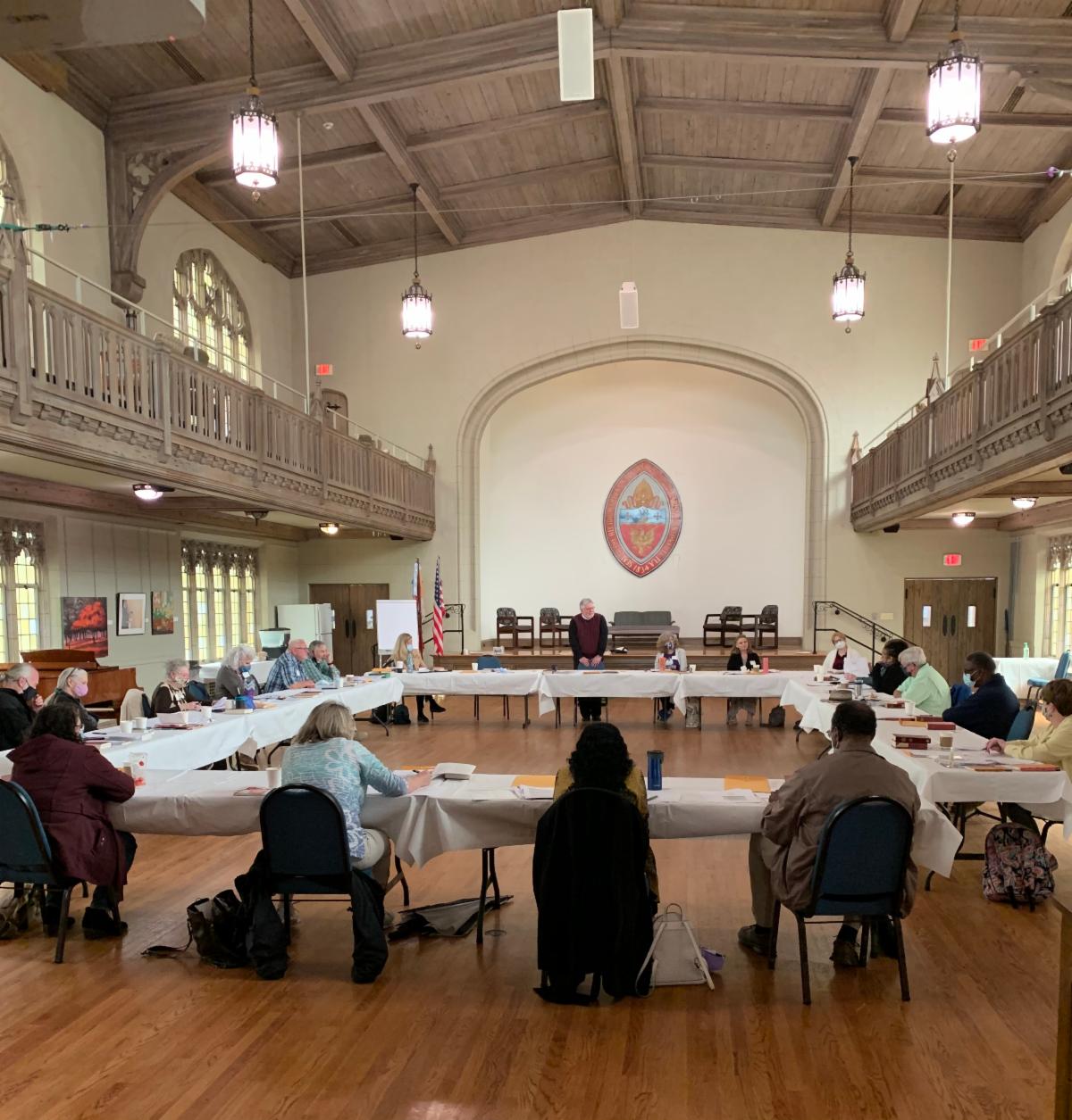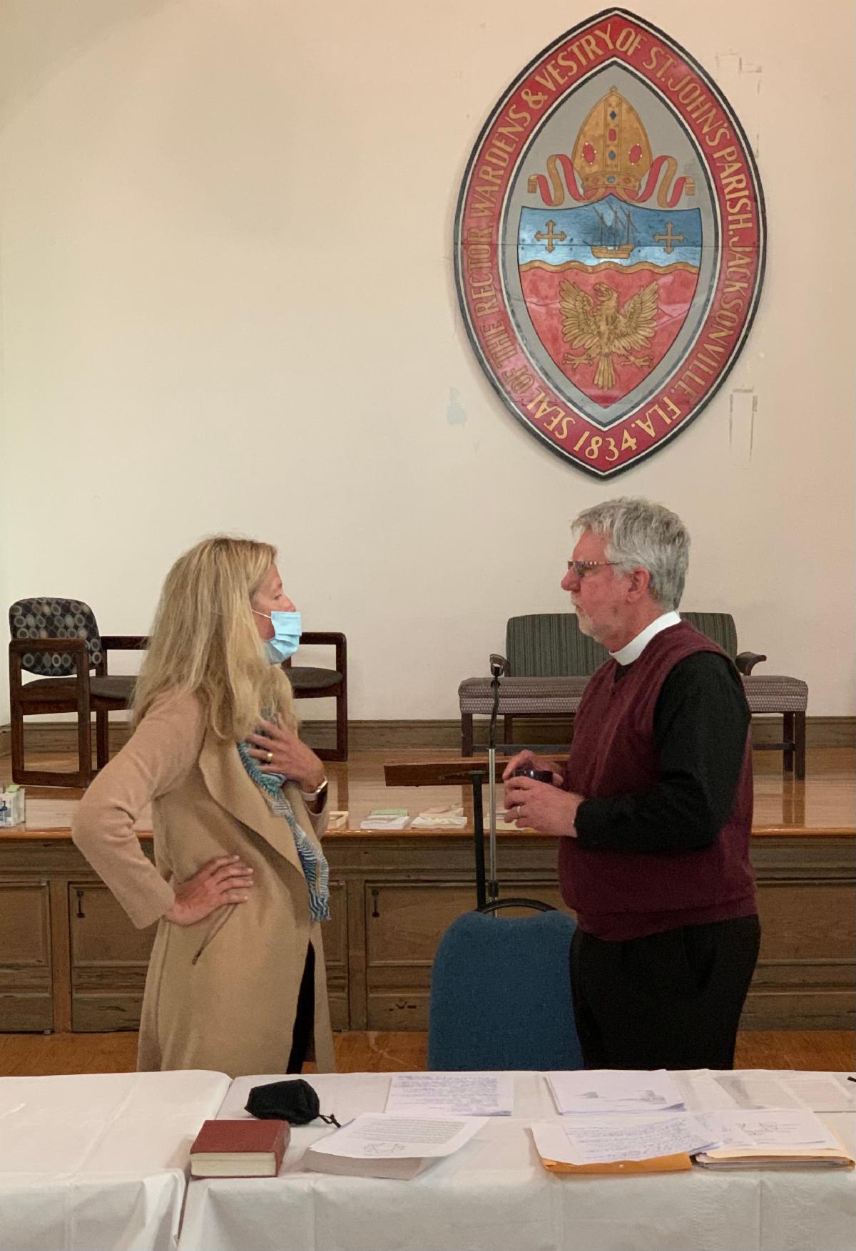 The 11-month 2021 Licensed Lay Ministry (LLM) course in Pastoral Care sponsored by the Bishop’s Institute met for the second time Saturday, March 20th at St John’s Cathedral. The participants meet together for teaching and practicums the third Saturday of every month. There are 18 enrolled from churches across the Diocese from as far west as Cedar Key, Mayo and Madison and as far south of Jacksonville as the Diocese goes on the east coast. The Director of the course is Laura Magevney (seen in the photo below with Fr Michael Ellis from St Francis in the Fields, Ponte Vedra who taught the March meeting. A number of the participants are in discernment for ordained ministry. We are grateful to the Cathedral for their hospitality as their spacious parish hall allows the course to observe proper safety protocols in regard to the Pandemic.