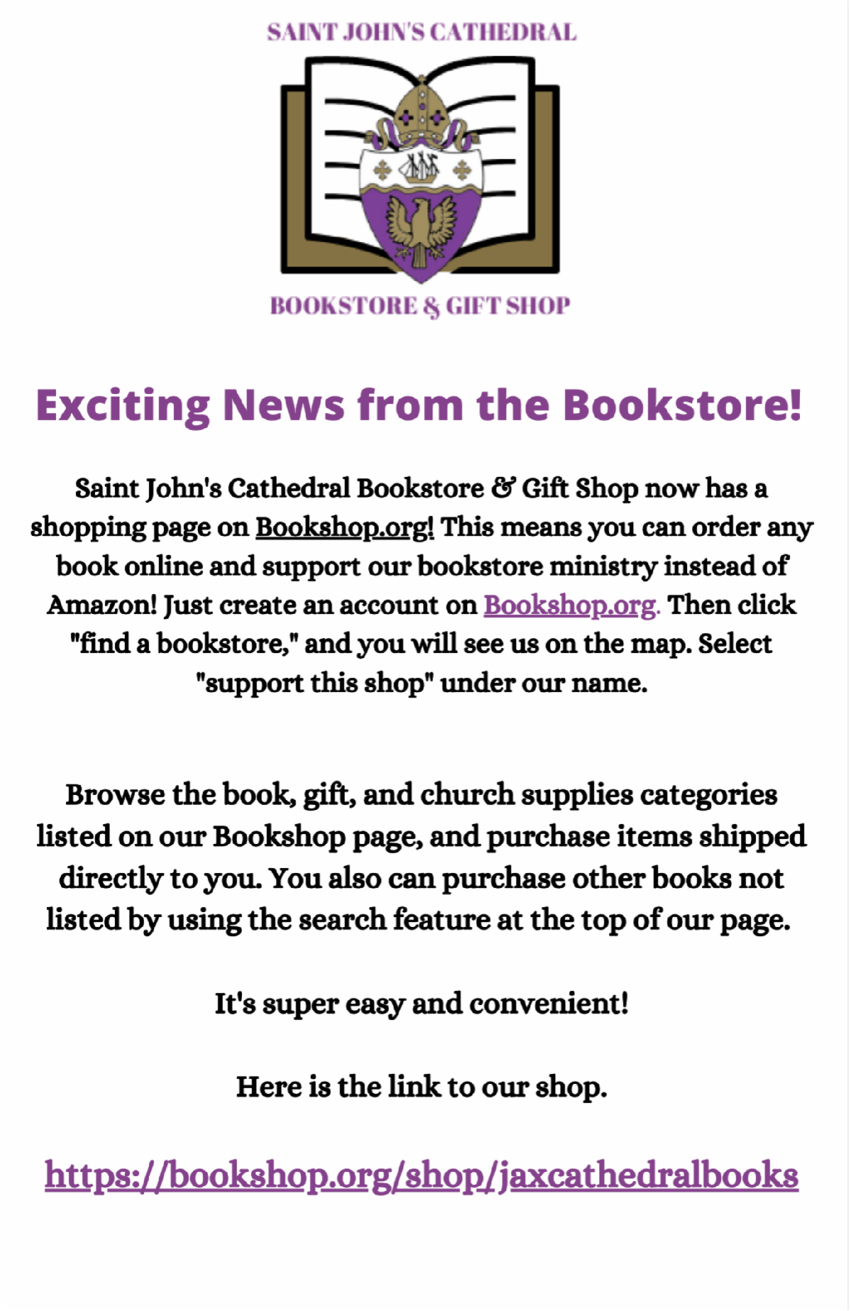 To register, call the Cathedral Bookstore: 904-356-5507, ext. 152
