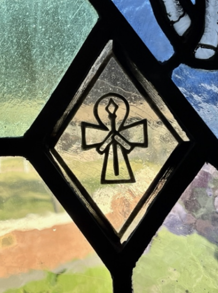 From a diamond image in a chapel window of St. Mark’s Episcopal Church, Jacksonville, honoring Absalom Jones. The image is taken from the logo of the St Thomas Church Absalom Jones founded in Philadelphia: St. Thomas, a carpenter’s square over an African ankh-shaped cross.