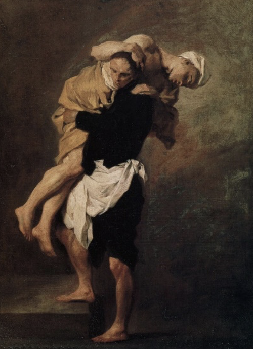He suffered stoically many physical ailments throughout his life including a wounded leg that would not heal. When he could not walk nor stand, he would crawl to visit the sick. His remains are buried in the Church of St Mary Magdalene in Rome, as is the cross that he claimed spoke to him concerning his work, asking: ‘Why are you afraid? Do you not realize that this is not your work but mine?’ Those words have become the motto of the caregivers inspired by him.