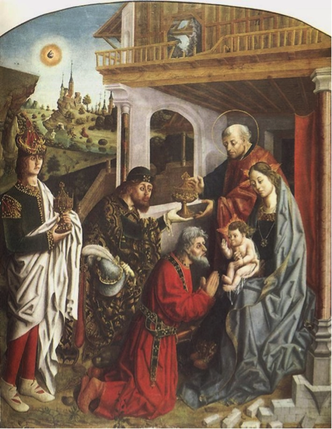 But not all work. On the first Sunday after the Epiphany, the twelfth of January, I was privileged to hear Dr. Charles Howard, the gifted art history teacher at the Episcopal School of Jacksonville, tell us how the Magi have been represented by various artists. Of the half dozen paintings that he chose, the one I liked most is by Fernando Gallegos (c. 1440-1507) that shows in the foreground the Magi in their kingly robes presenting their gifts to the Christ child yet in the background, halfway up a long and winding road, stripped and bathing in a mountain stream, cleansing themselves after a long journey and in preparation for their upcoming visitation.