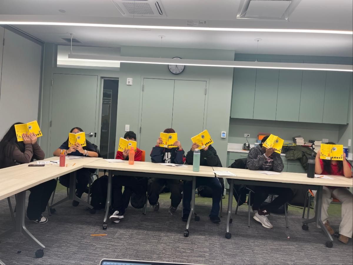 | Reading novels together is a core part of the CitySquash academic program. Many school curriculums are removing full novels from curriculums and replacing them with excerpts and reading comprehension passages. We remain committed to the importance of reading and the way a great book leads to empathy and connection. Elementary school, middle school, and high school academics all have a large book group component. If you'd like to read along, elementary school is currently reading Sonia Sotomayor: A Judge Grows in the Bronx by Jonah Winter in 3rd grade, Ban This Book by Alan Gratz in 4th grade and Wonder by R. J. Palacio in 5th grade. Middle schoolers are reading Ghost by Jason Reynolds (pictured above), and high schoolers are reading Persepolis by Marjane Satrapi. | | Cultural outings are an important part of our academic program. Above, high schoolers took a trip to visit the 52nd Street Project to see "Sugar & Spice, Plays to Savor." This was in connection with their study of "The Crucible" and led to discussion about the work of playwrights and how to bring scripts to life. Other cultural outings include museum tours, restaurant visits, and trips to public arts installations. | |