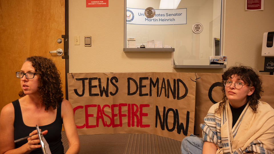 Jewish peace activists in New Mexico hold protests demanding senators call for Gaza ceasefire. Here in the United States, pressure is mounting on more congressmembers to join calls for a Gaza ceasefire. On Monday, protesters in New Mexico, held nonviolent sit-in protests at the offices of Senators Martin Heinrich and Ben Ray Luján, led by Jewish peace activists. Nine people were arrested. The protests came as hundreds of congressional staffers issued an open letter urging lawmakers to support a peaceful resolution to the attacks on Gaza, the return of Israeli hostages, and to grant access to humanitarian aid to the Palestinian territory. Only 18 U.S. lawmakers have signed the ceasefire resolution so far, including... (read more)
