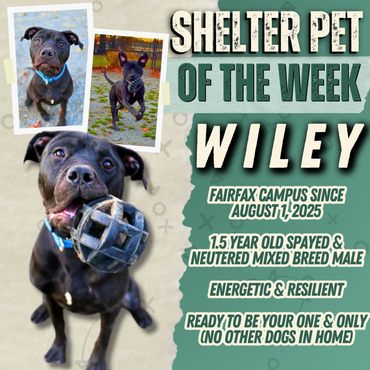 Meet Wiley, the Life of the Party with a Heart of Gold, who has been at the shelter since August 1.