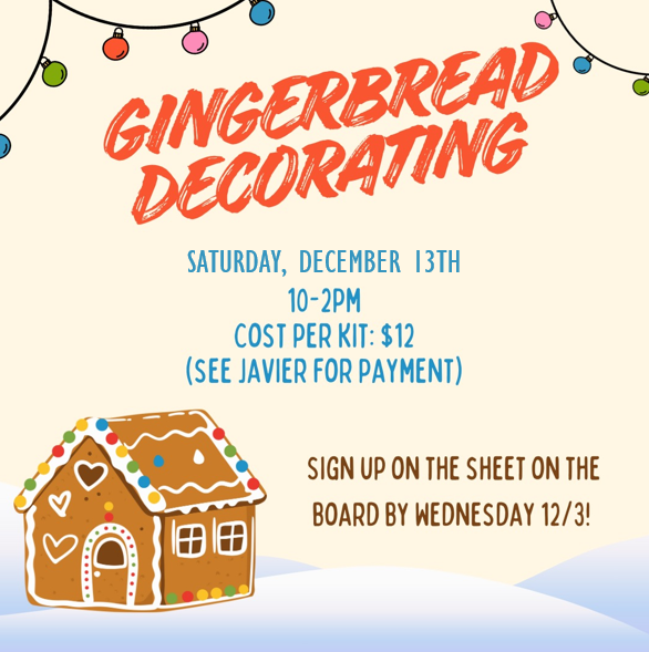 12/13 – Youth & Family Ministry Annual Gingerbread Decorating @church building