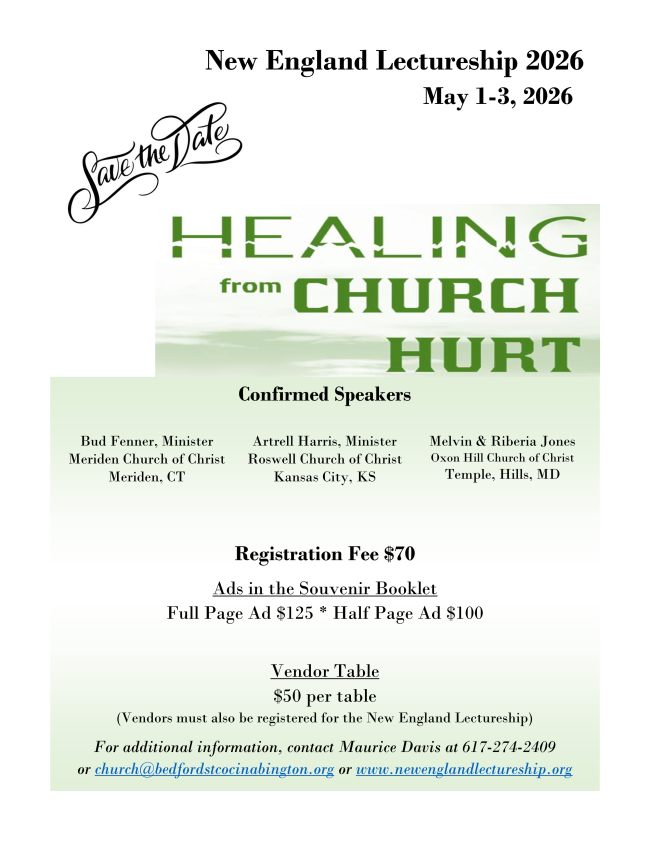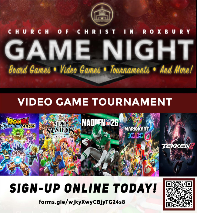 Roxbury 2026 Ladies’ Day: Save Saturday, March 7, 2026, for our Annual Ladies’ Day. Our speaker will be Sis. Glinda Meadows from the Bouldercrest Church of Christ in Atlanta, Georgia. Registration is now open for this event. Scan the QR code or click the link in the invitation flyer in the Women's Ministry section of the e-bulletin to register. The cost for Roxbury sisters is $90 for ages 19 & up; $45 for ages 12-18. Submit your payments via our e-giving link with a note designating it as a Ladies' Day Payment, or by cash or check to a member of the Ladies' Day Planning Team.