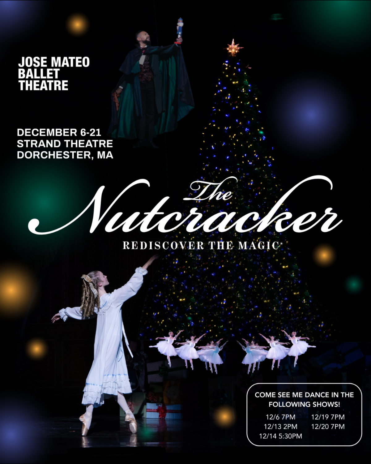 Get your tickets now to see Yemisi ADEkoje perform in the Jose Mateo Ballet Theatre's 2025 production of The Nutcracker at the Strand Theatre in Dorchester December 6-21. The dates of Yemisi's performances are listed above.