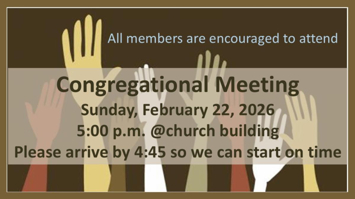 2/28 - Community Outreach, 9:30 a.m. @ church building. All are welcome to participate.