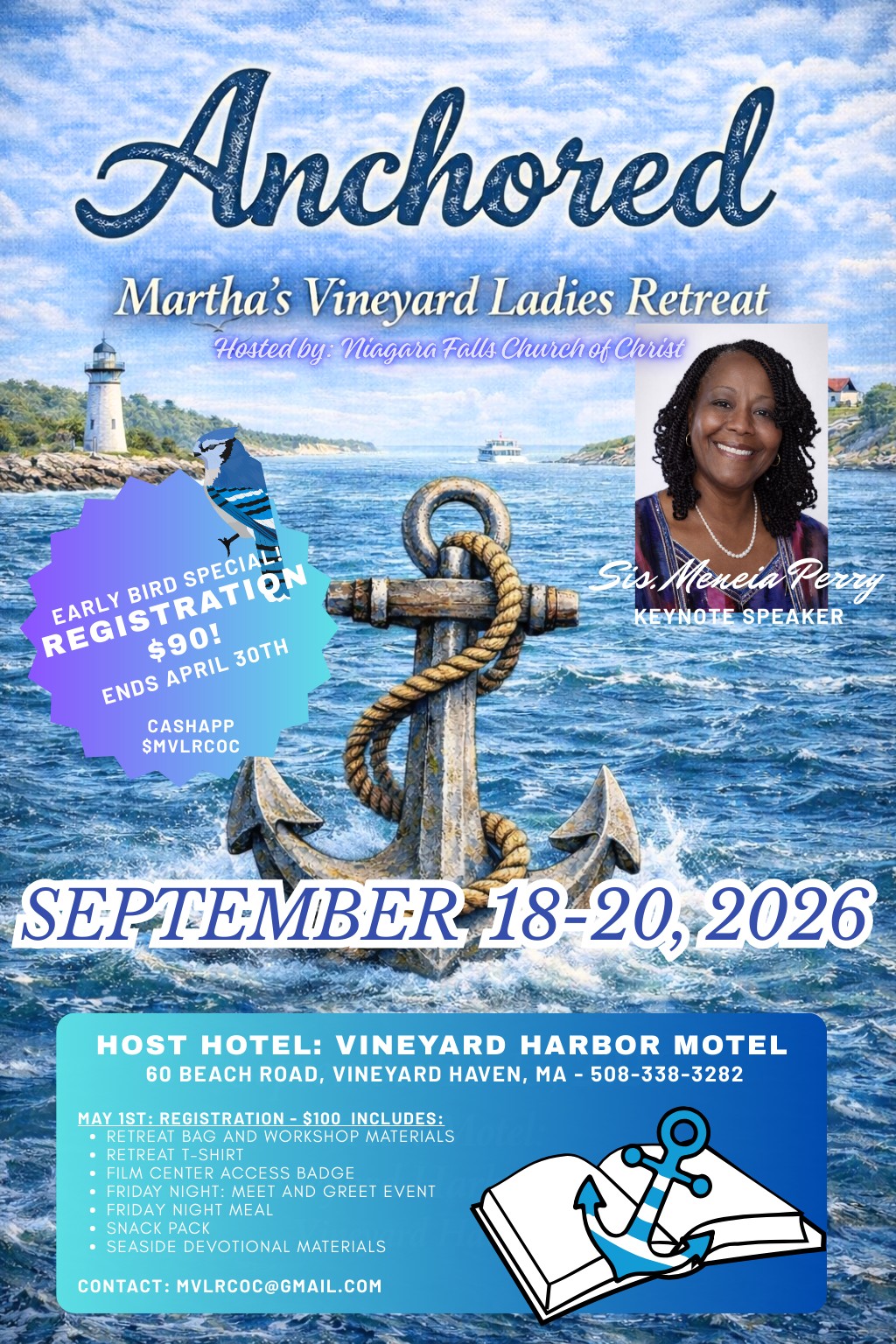 2026 Martha's Vineyard Ladies' Retreat: September 18-20, at the Vineyard Harbor Hotel on Martha’s Vineyard. See e-bulletin for details and registration links.