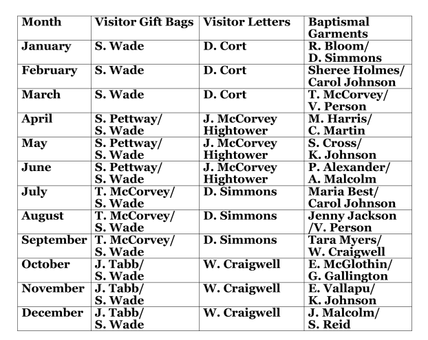 See Bro. or Sis. Gallington, Sis. Nagarajah, or Sis. Keitrice Johnson with any questions.