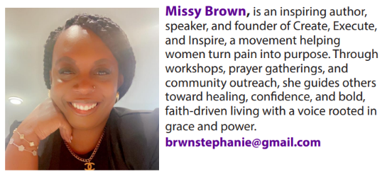 | | | Click here to read Sis. Missy Brown's latest article, Starting the New Year Strong - Without the Pressure, which appears in the current issue of Blueprints Magazine, a monthly publication of Grace Circle, under the direction of Bro. John Davis Marshall of Anderson, South Carolina. Congratulations Missy! | | |