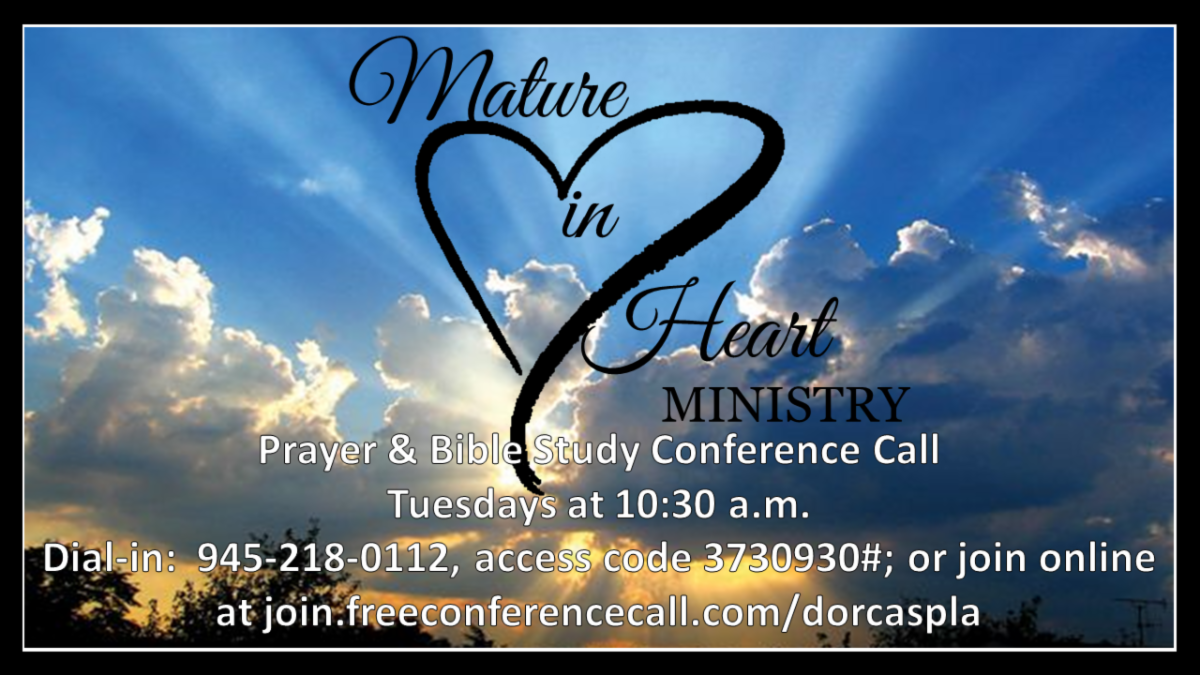 - Mature in Heart Women's Prayer (Tuesdays @ 10:30am) VIA TELECONFERENCE (connection info below)