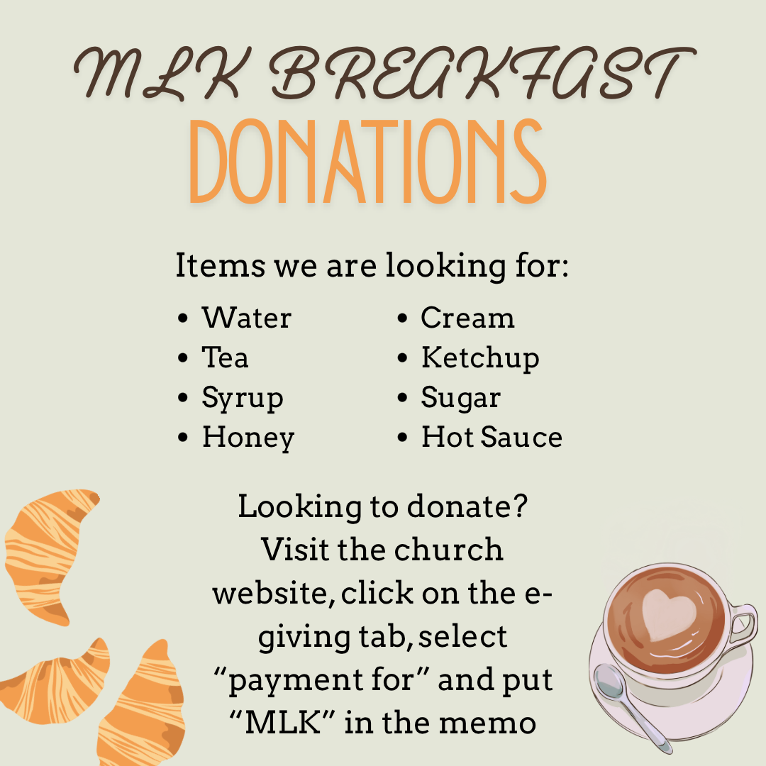 1/19 - 2026 Martin Luther King Day Breakfast, 10:00 a.m. @ church building