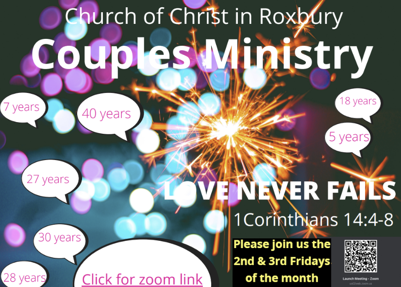 The Couples' Ministry meets the second and third Fridays of the month at 7:00 p.m. Click above to join meeting. January meetings will be held on Friday, 1/9 and Friday, 1/16.