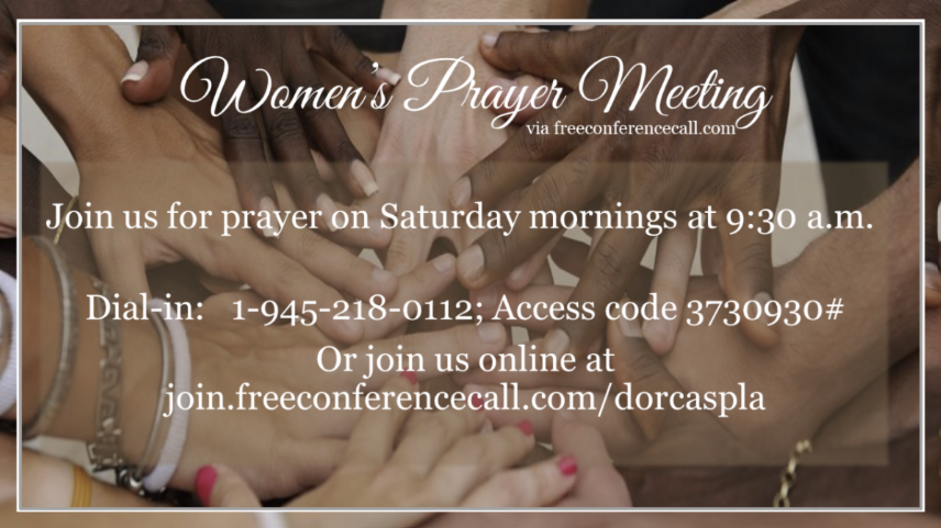 - Women's Prayer (Saturdays 9:30am) VIA TELECONFERENCE (Connection info below)
