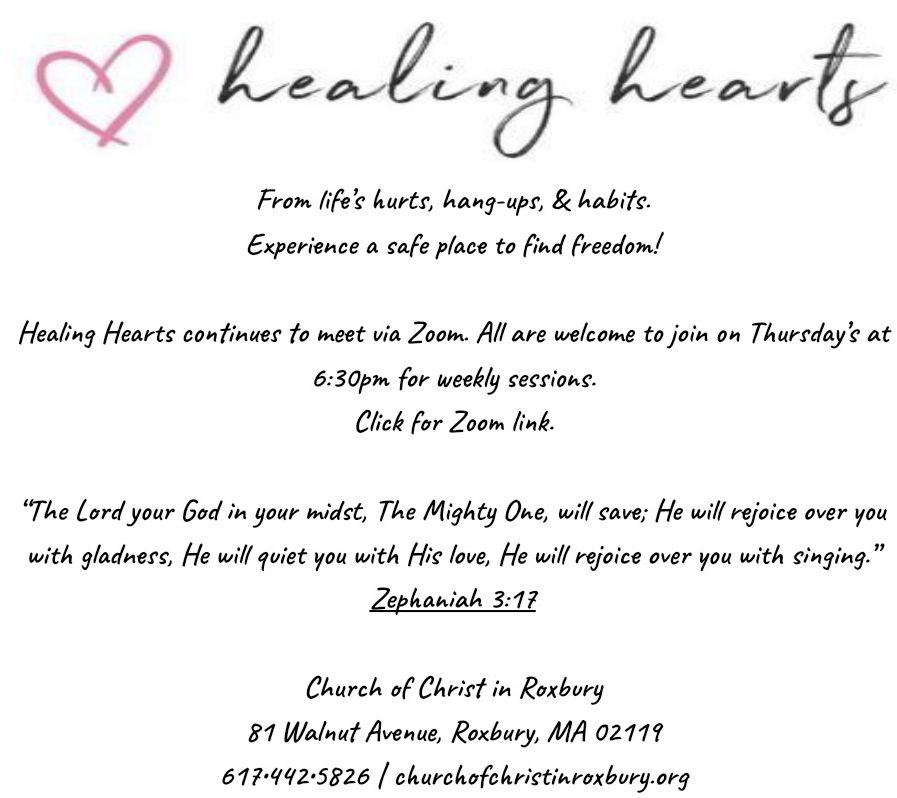 - Healing Hearts (Thursdays @6:15pm) VIA ZOOM