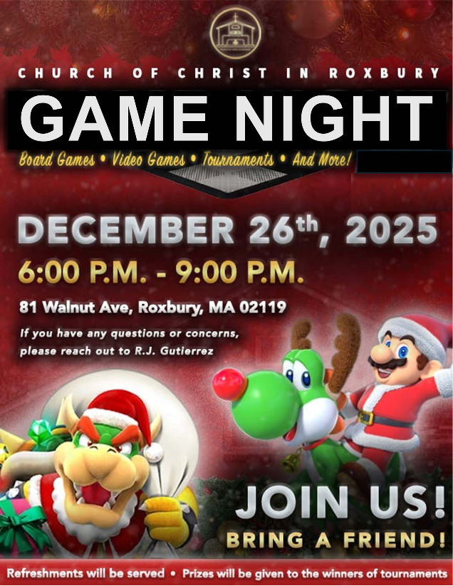 Community Outreach: Saturday, December 27, 2025, beginning at 9:30 a.m. All are encouraged to join us as we prepare and distribute 100 bags of groceries to members of the Roxbury community.