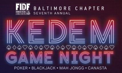 Join the FIDF Baltimore Chapter and the Beth El Israel Affairs Committee for the Seventh Annual KEDEM Game Night benefiting our adopted battalion! Play Black Jack, Poker, Mah Jongg and Canasta. Click