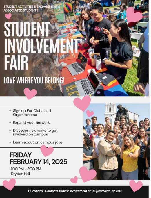 Contest ENDS on February 14, 2025 at 11:59 P PST. One winner will be selected for each category listed. The winners will be announced on or after February 17, 2025 and will be contacted by the Office of Residential Experience from the reslife@stmarys-ca.edu email.