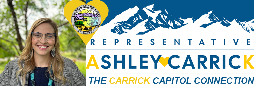 My team and I are working from our office in the Fairbanks Legislative Information Office in the Global Credit Union building across from Home Depot at 1292 Sadler Way, Third Floor. Feel free to swing by if we may be of service to you, give us a call at 907-452-6084, email us at Rep.Ashley.Carrick@akleg.gov, and follow us on social media @RepCarrick. Until next week!