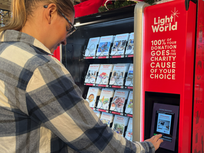 Rep. Carrick at the opening of the Giving Machine in North Pole on Wednesday