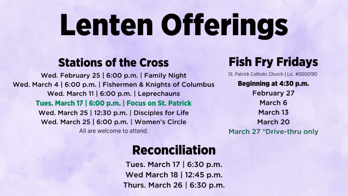 The success of the Fish Fry and the hosting of the Archdiocesan Rite show that hospitality is a form of prayer. We at Saint Patrick’s are proud to consider ourselves a welcoming community. Sharing is caring. May God continue to bless you as we walk together on our Lenten path. Amen.