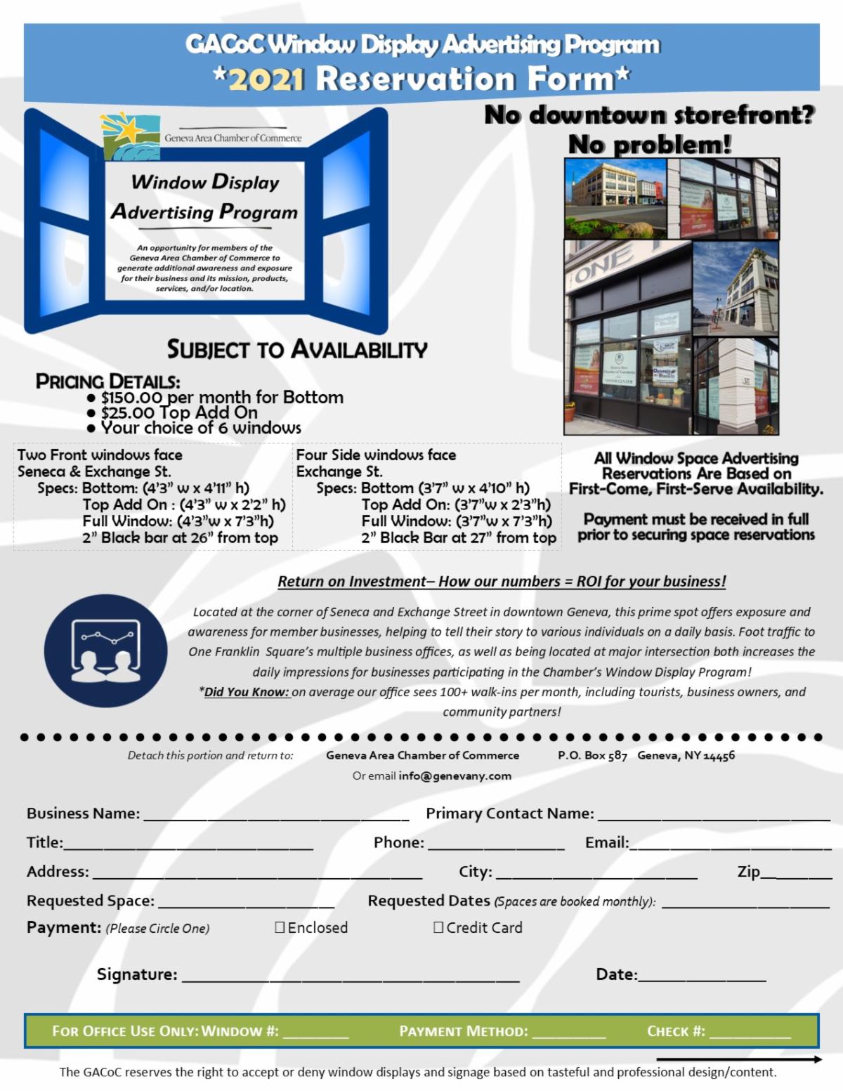 Contact the Chamber to sign up at 315-789-1776 or email info@genevany.com