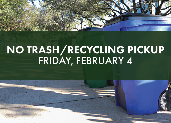 There will be no trash and recycling pickup on Friday due to hazardous conditions and landfill and recycling facility closures. Here is the revised schedule: