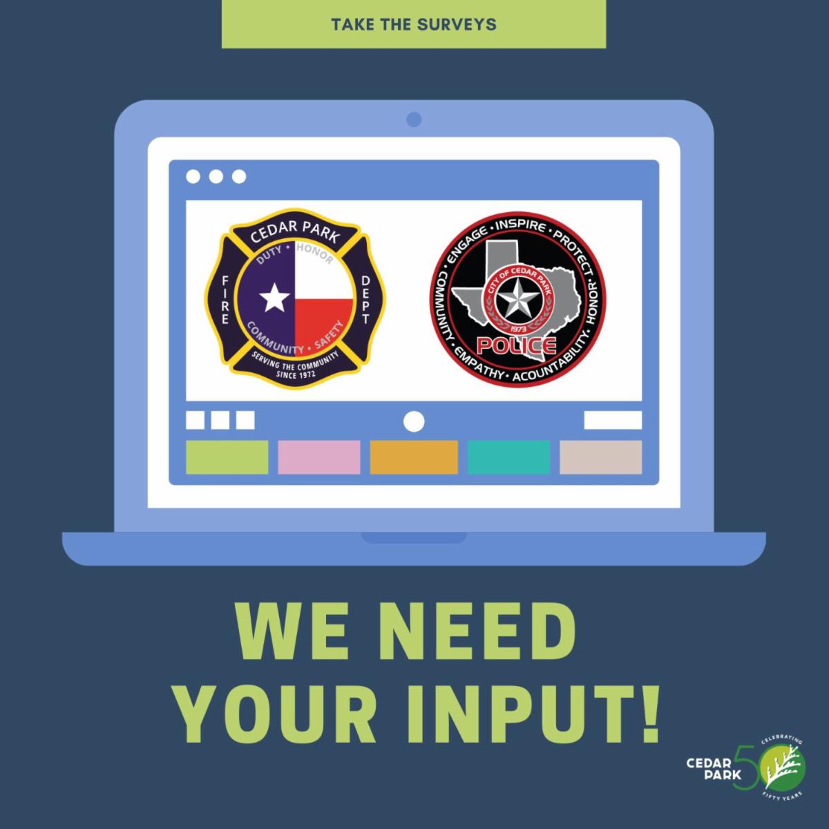 The City has engaged a third party consultant to develop strategic plans for the Police and Fire Departments. Resident input is essential. We need your feedback to plan for the future. Take the surveys now: