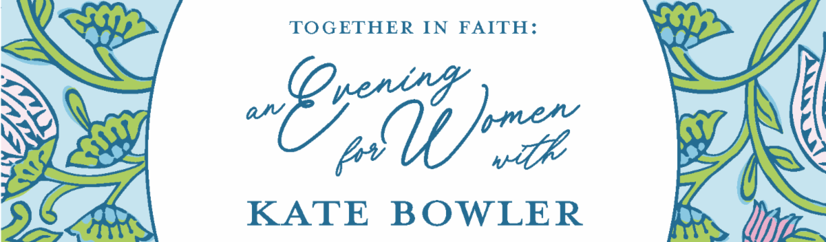 Please join us on February 26 from 6:00 - 8:15 p.m. for Together in Faith: An Evening for Women with Kate Bowler, a Duke University associate professor, award-winning podcast host, and four-time New York Times bestselling author. Together in Faith is hosted by four congregations in the Raleigh area: Christ Episcopal Church, Hayes Barton United Methodist Church, St. Michael's Episcopal Church and White Memorial Presbyterian Church. Learn more and purchase tickets here.